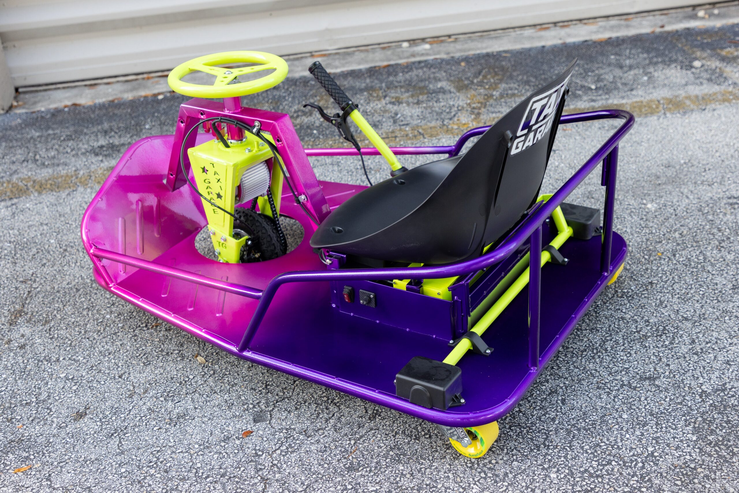 TAXI GARAGE Wide casters including spacers w/longboard wheels.